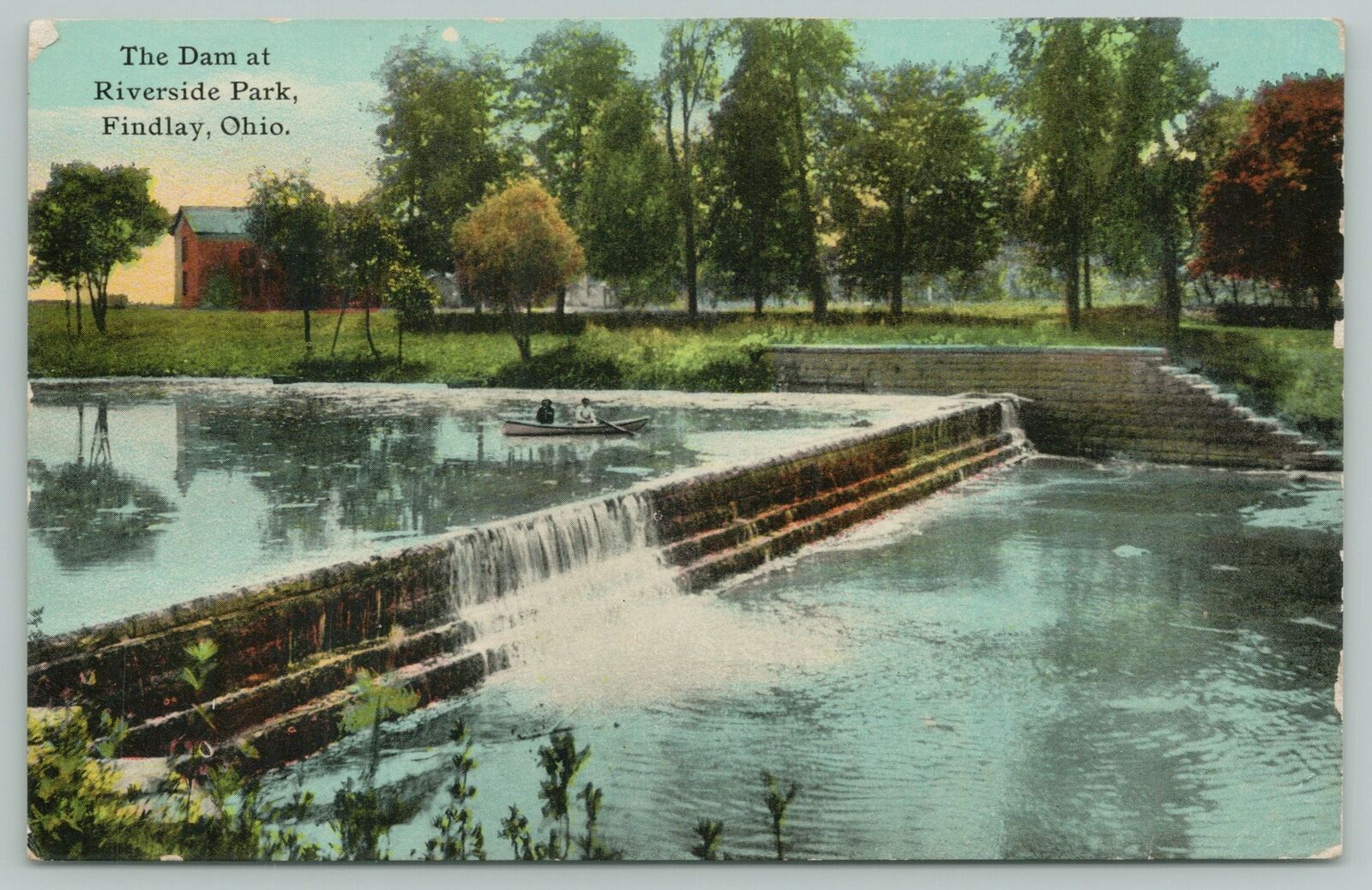 Findlay Ohio~Dam at Riverside Park~1910 Postcard