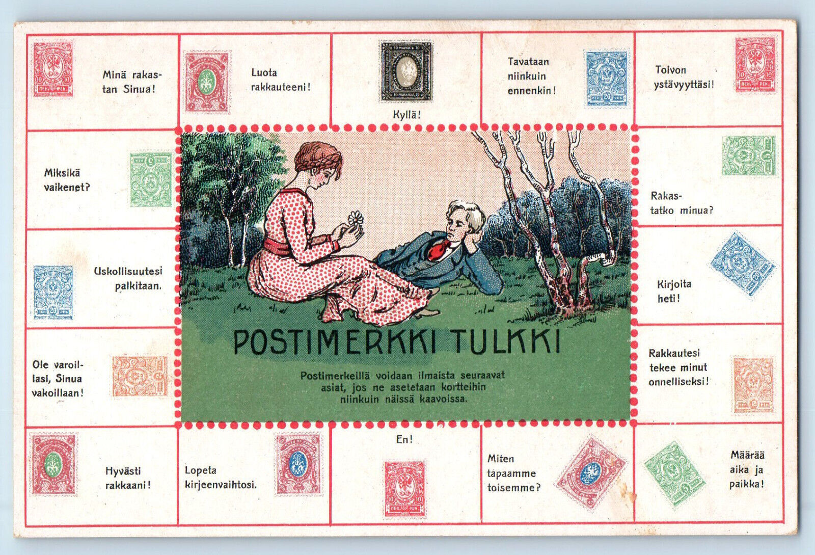 Finland Postcard Postmark Interpreter Couple Near Trees c1910 Antique