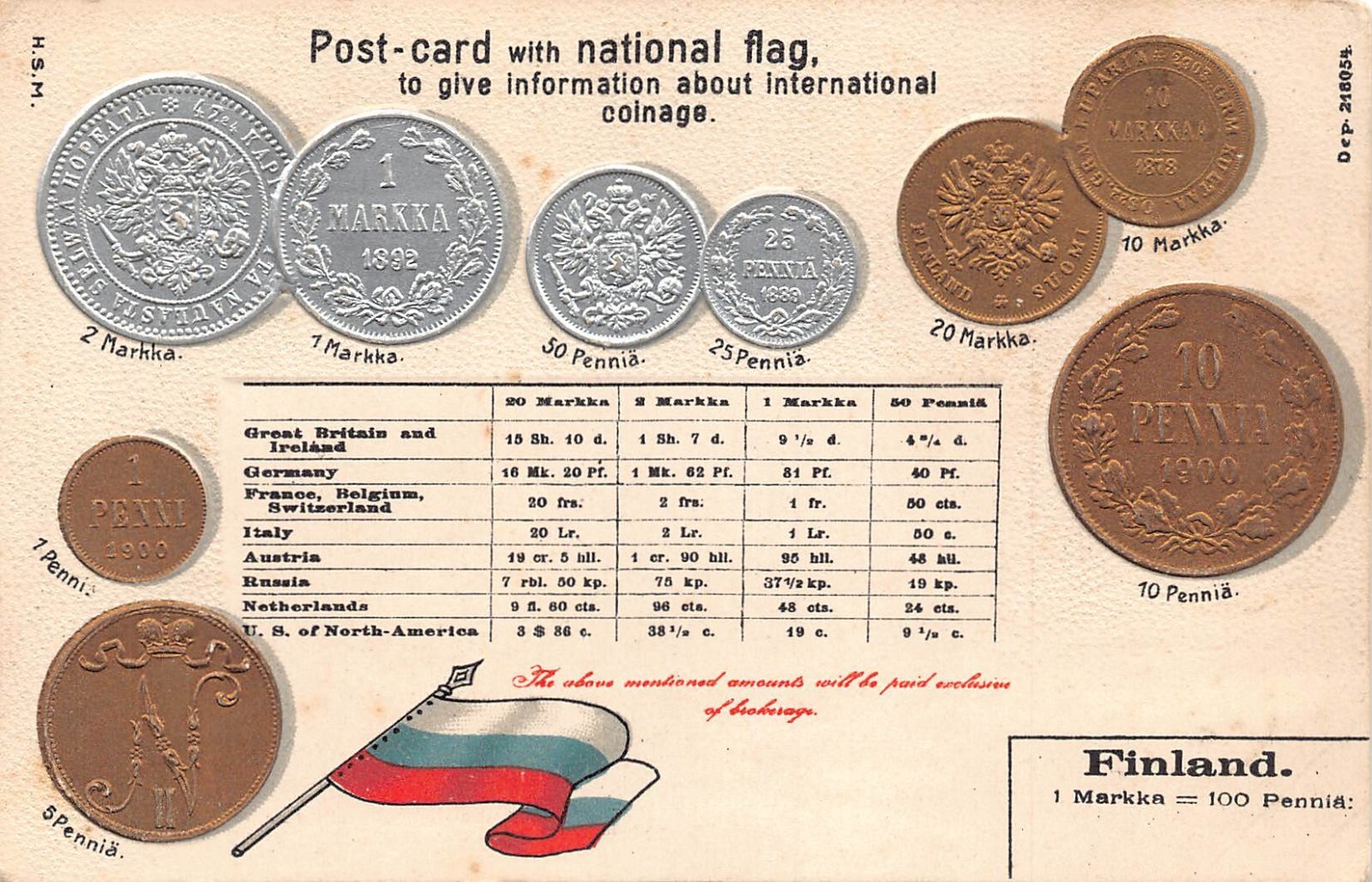 Finland Table Exchange Flag Coins embossed coinage postcard C315 This item is listed via xdm.it software