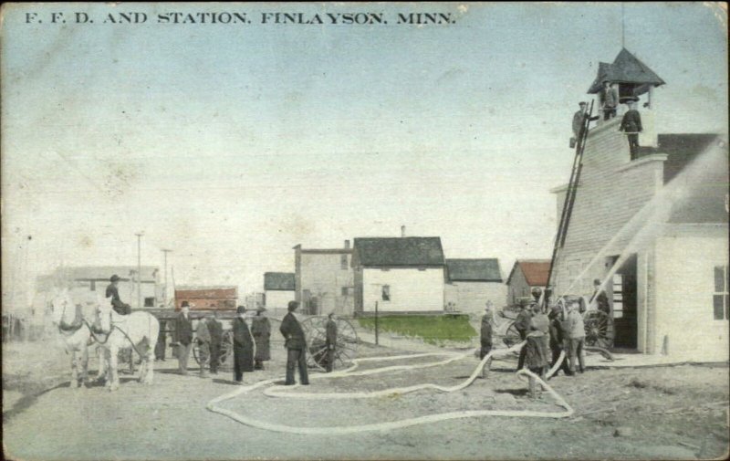 Finlayson MN Fire Dept Station Fire Fighters c1910 Postcard