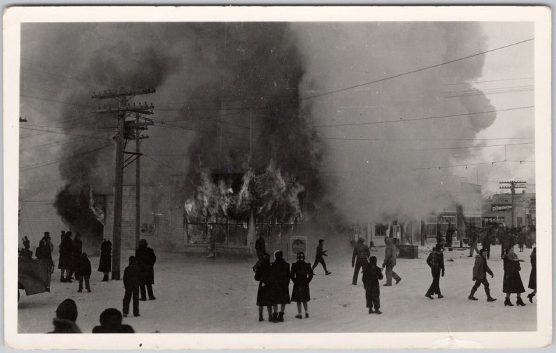 Fire Scene People Winter Coca-Cola Sign Unknown Location USA RPPC Postcard H80