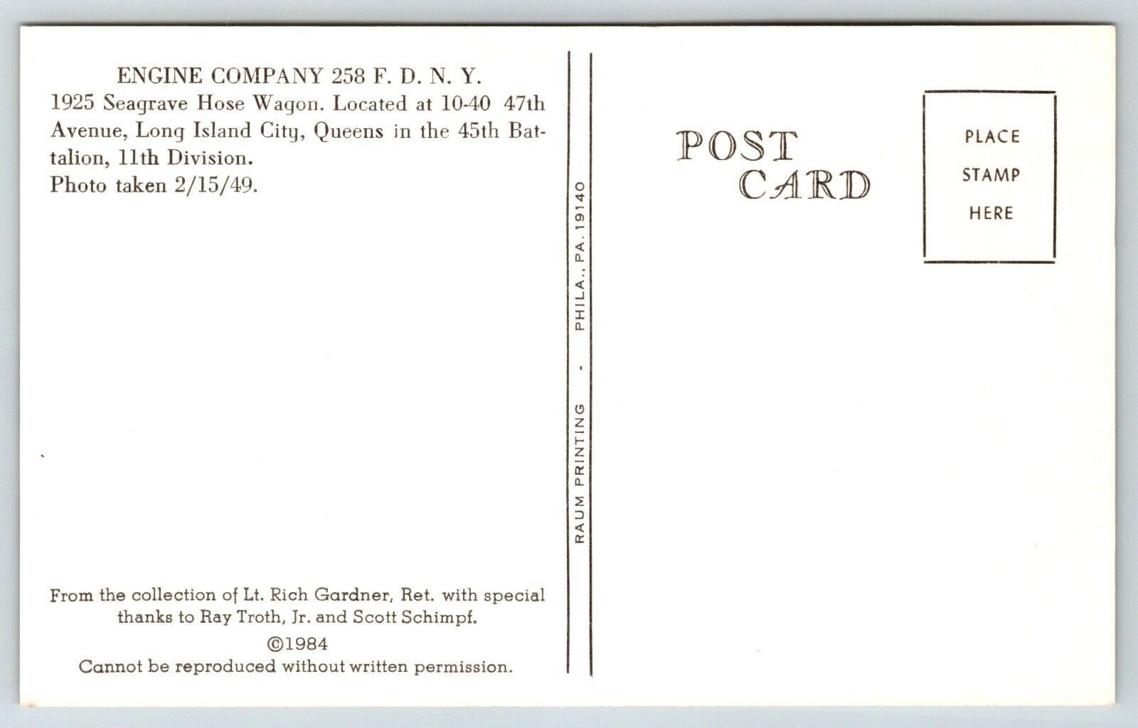 Fire Truck Engine - Fireman Postcard - FDNY - Engine Company #258