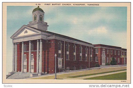 First Baptist Church, Kingsport, Tennessee, 1930-1940s :: Antique (Vintage) Original Postcard, Size (3.5" by 5.5"), Linen, EX.