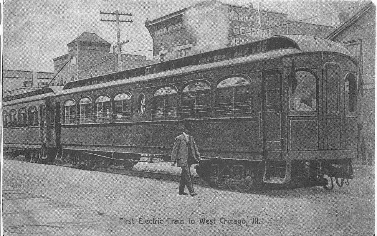 FIRST ELECTRIC TRAIN TO WEST CHICAGO ILLINOIS POSTCARD (c. 1960s)