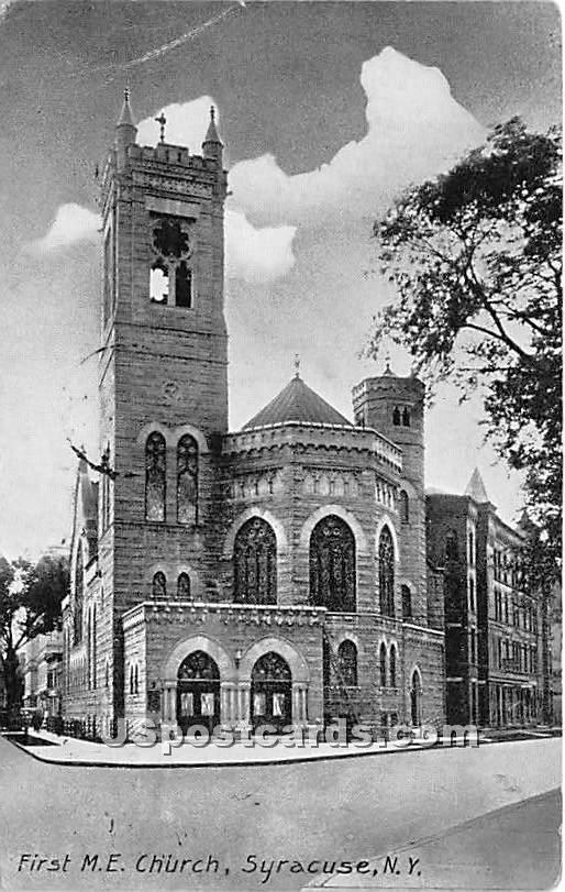 First ME Church - Syracuse, New York Postcard - 1909 Grade: 4 Size: R - Regular size: Approx 3 1/2 X 5 1/2 inch (9 cm X 14 cm) Grading Scale: Grade 1 = Perfect corners Grade 2 = Very Minimal corner wear, no cr ... Read More