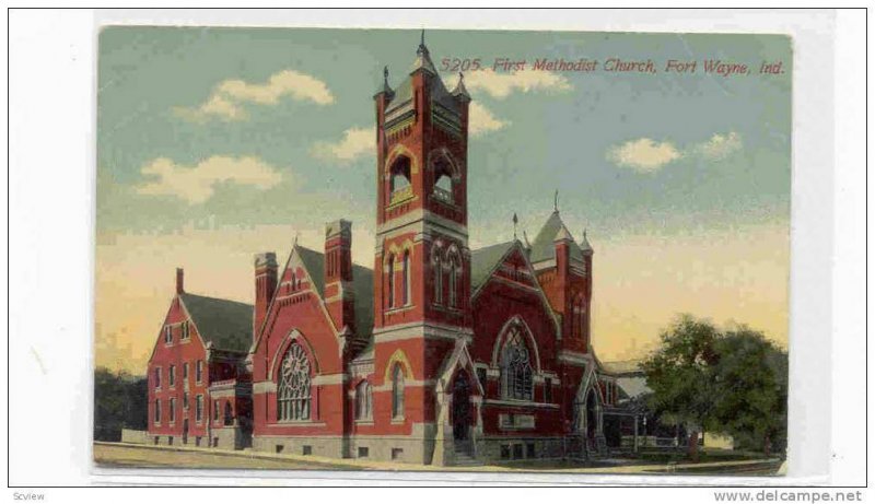 First Methodist Church, Fort Wayne, Indiana, 1900-1910s :: Antique (Vintage) Original Postcard, Standard Size (3.5 by 5.5), Litho, EX, Only WOB.