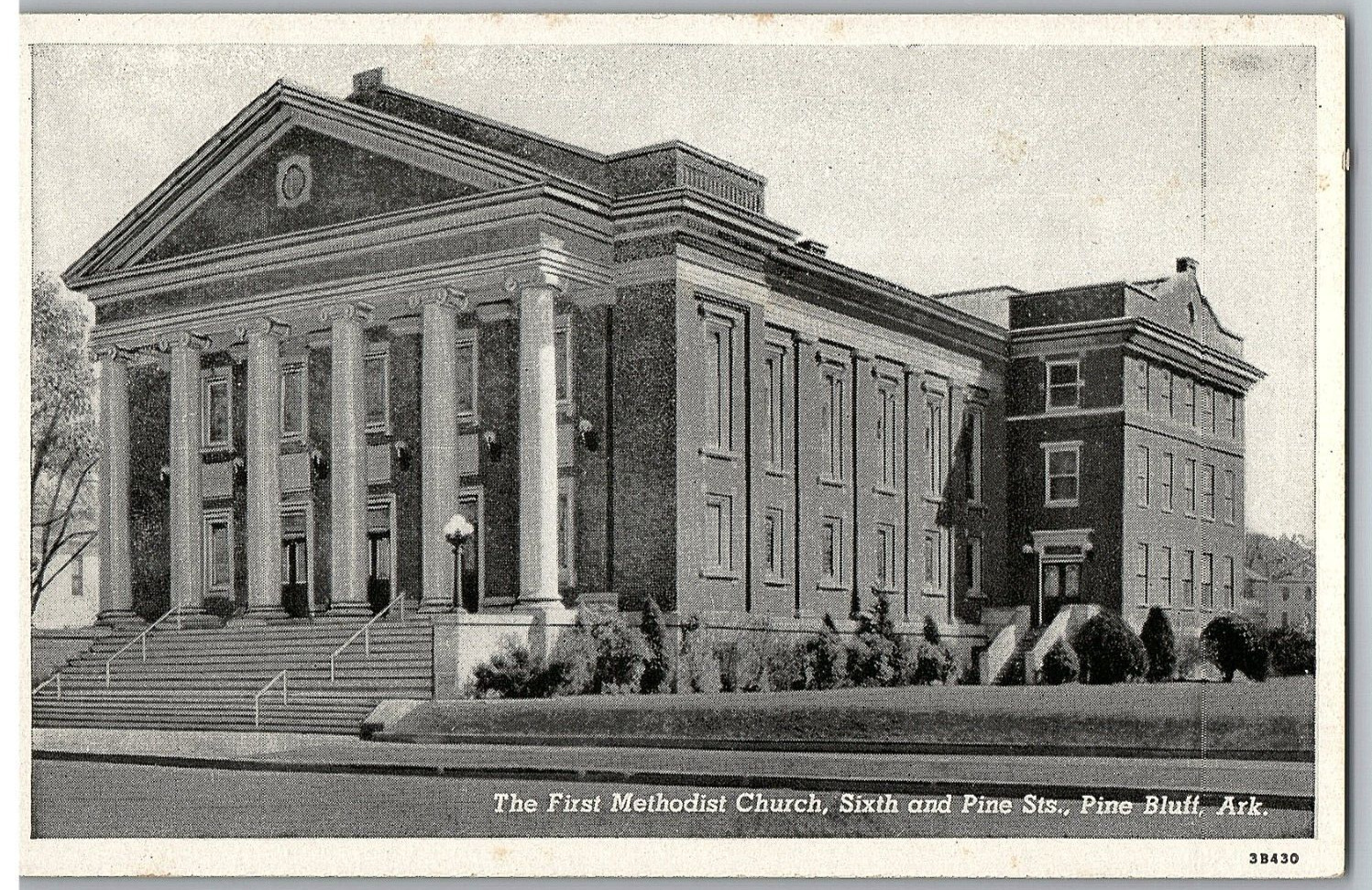 First Methodist Church Sixth & Pine Sta Pine Bluff B& W Arkansas Postcard