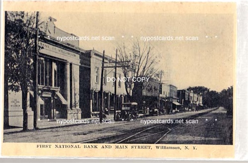 First National Bank & Main St., Williamson Ny Description: Postal Usage: Unmailed Condition: Very Good Type: Printed Note: Counter Stamped, Blake & Roney County: Wayne Co. > Williamson