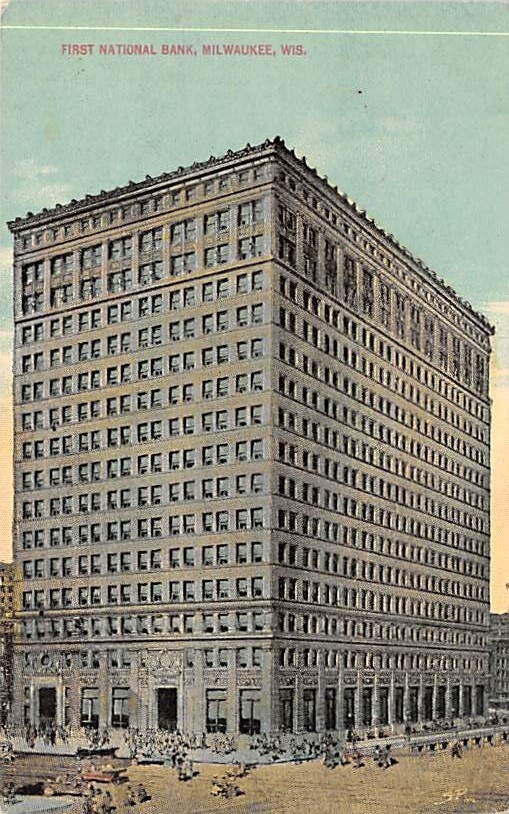 First National Bank Milwaukee WI Grade: 1 Size: Regular Size Postcard - approximately 3 1/2 inch x 5 1/2 inch (9 CM x 14 CM) Grading Scale: Grade 1 = Perfect corners Grade 2 = Very Minimal corner wear, no creas ... Read More