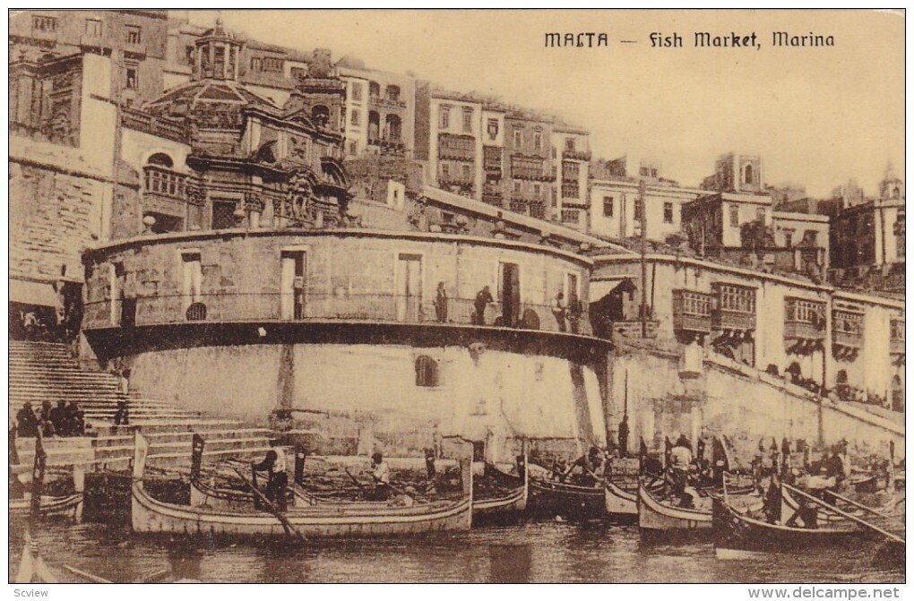 Fish Market and Marina, Malta, 1900-10s :: Postcard , 3.5 by 5.5 , Litho, EX