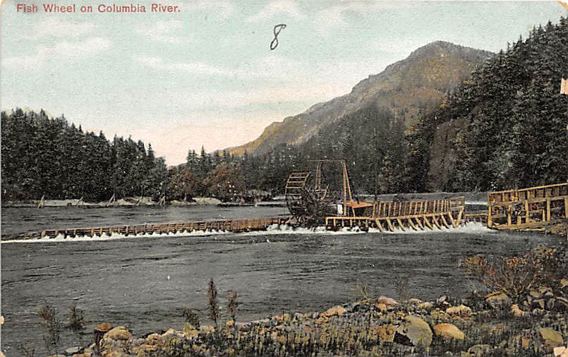 Fish Wheel Columbia River, Oregon OR Postcard - writing on back