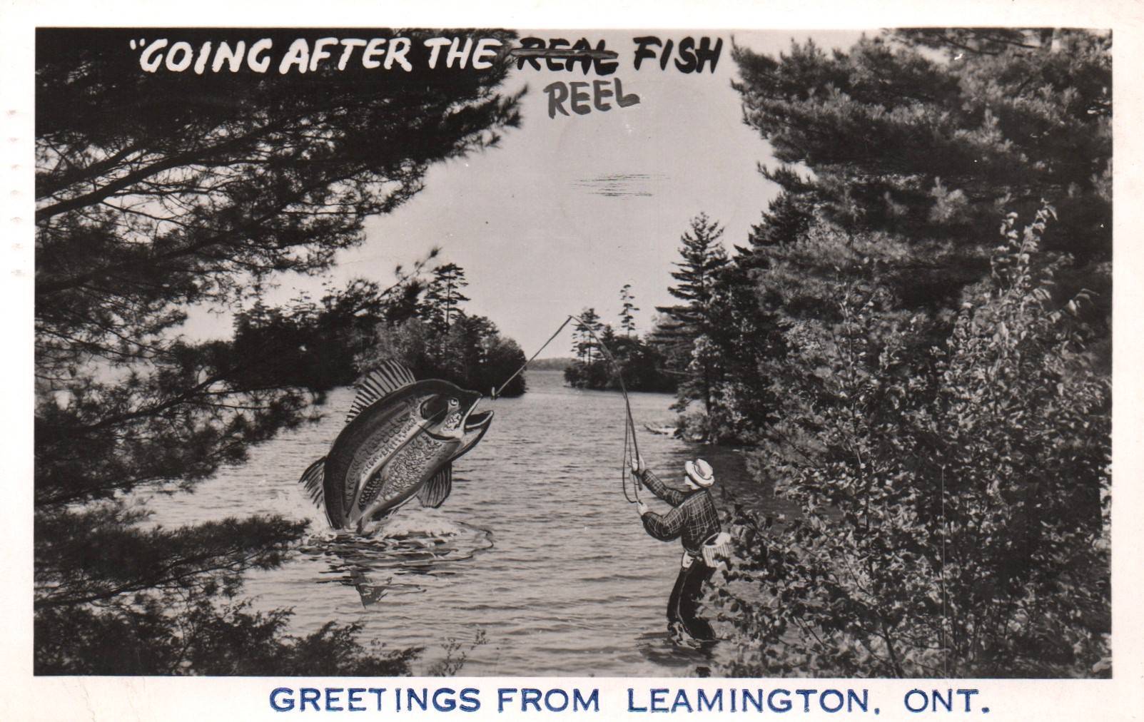 Fisherman,Exaggerated Fish,Greetings From Leamington,Ontario,Canada
