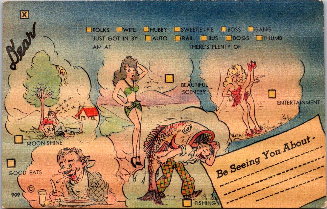 Postally unused Linen era postcard (3 1/2 x 5 1/2 inches) in VG condition
