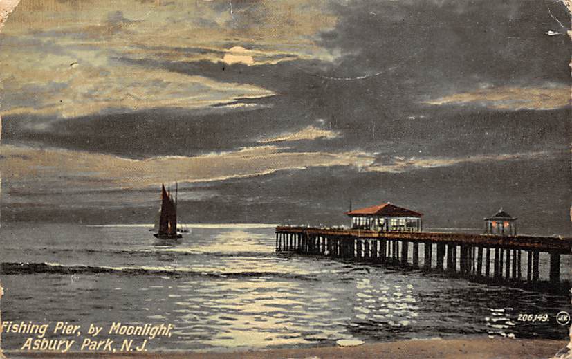 Fishing Pier By Moonlight Asbury Park NJ Grade: Size: Regular Size Postcard - approximately 3 1/2 inch x 5 1/2 inch (9 CM x 14 CM) Grading Scale: Grade 1 = Perfect corners Grade 2 = Very Minimal corner wear, no ... Read More
