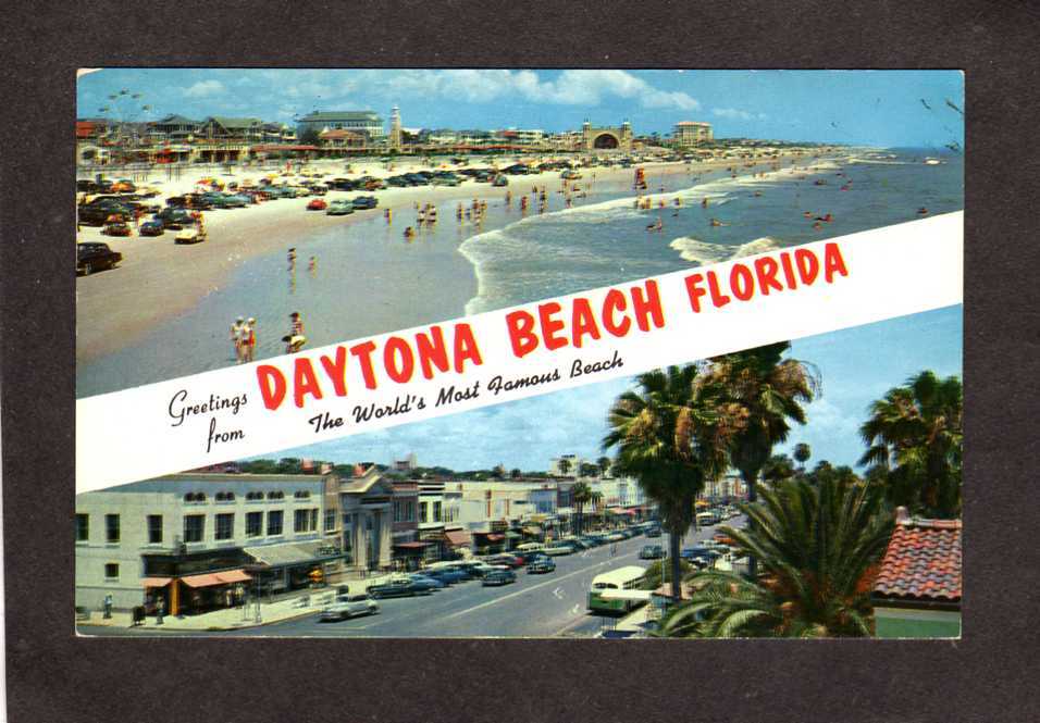 FL Greetings From Daytona Beach Florida Postcard Beach Downtown Stores