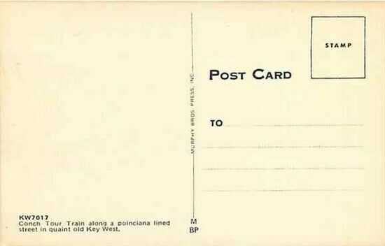 Key West, Florida, Conch Tour Train Chrome Postcard. Publisher: Murphy Brothers The corners are sharp. The image is bright and clean. Postally unused.