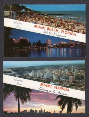 FL Lot 2 Greetings MIAMI FLORIDA Postcard PC Multi View