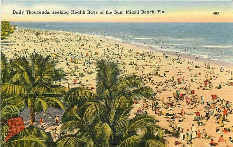 Linen Postcard Miami Beach, Florida, Beach Scene Publisher/Printer: Tichnor No. 71721 Postmark: None Image: Nice and clean Corners: Very light wear Faults/Other: