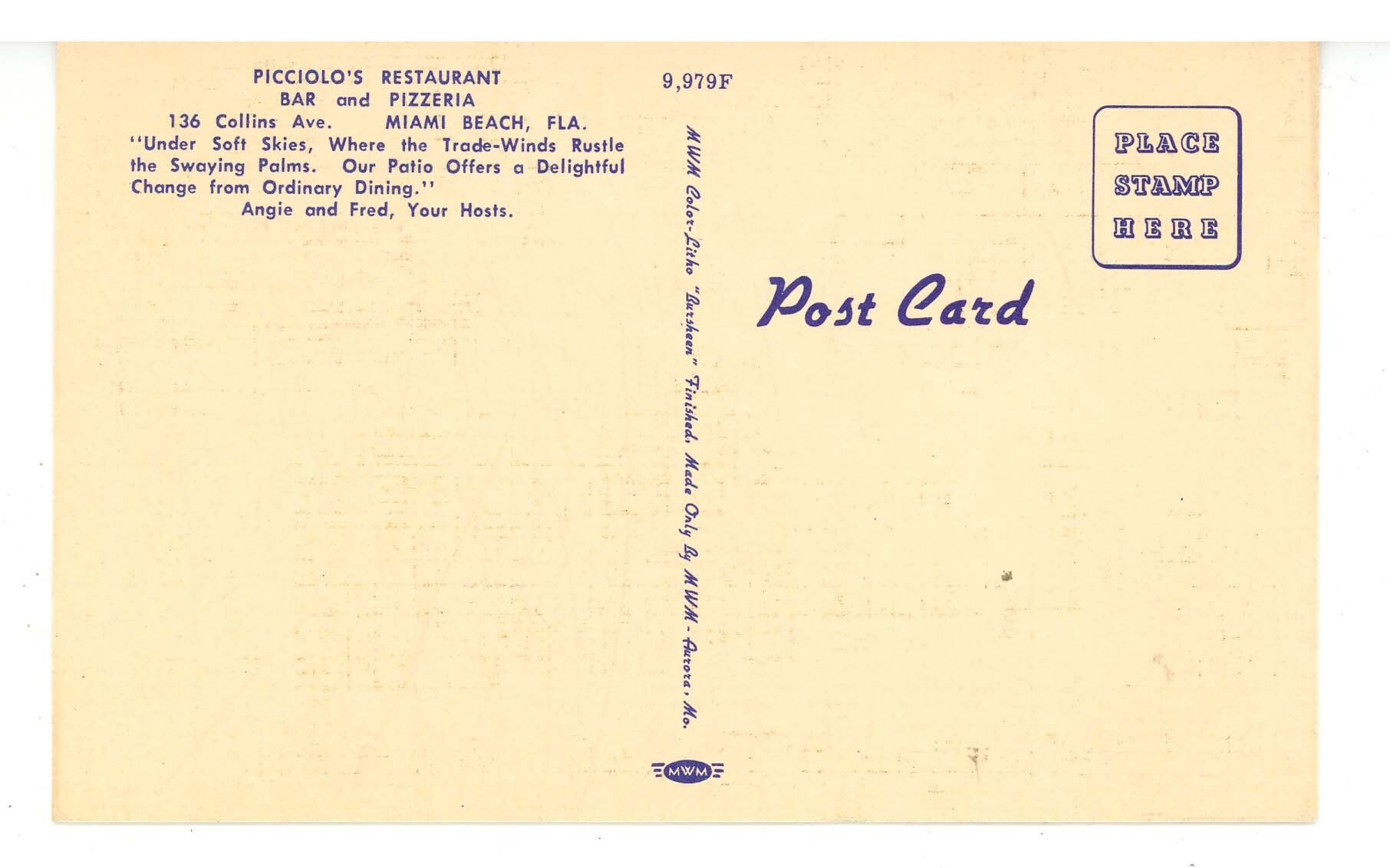 FL - Miami Beach. Picciolo Restaurant Interior & Exterior View