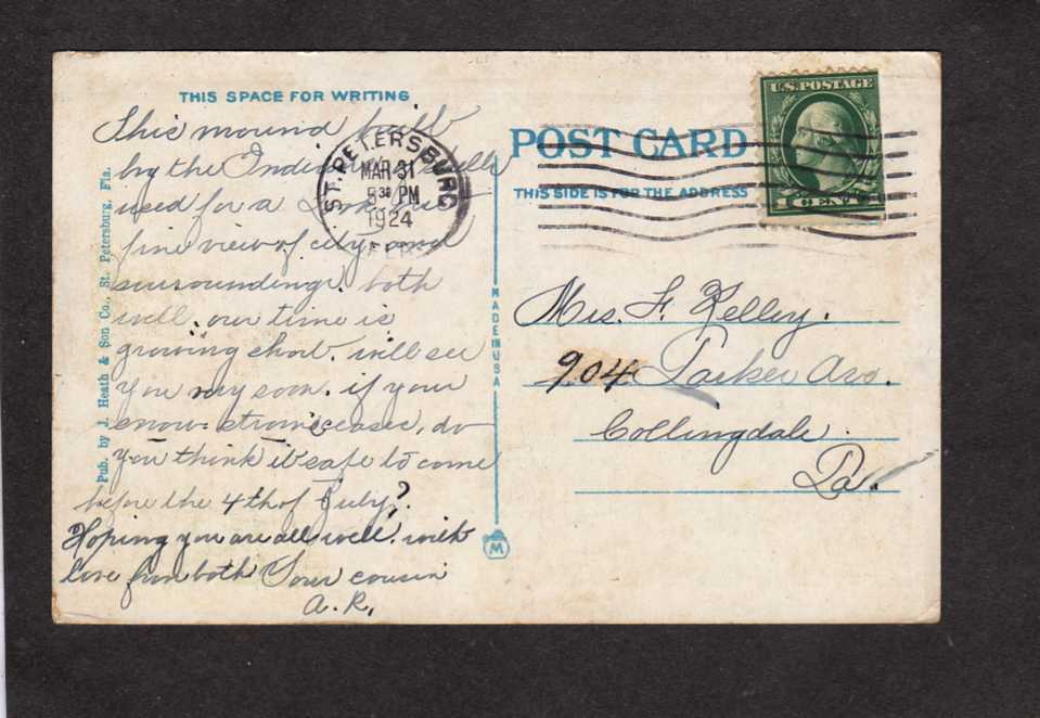 FL Shell Mound St Petersburg Florida Vintage Postcard