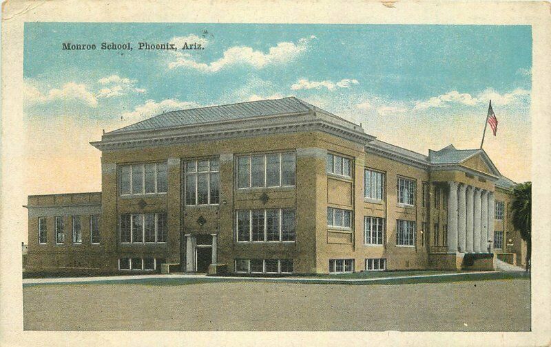 Flag 1920s Monroe School Phoenix Arizona Postcard Kress 3377