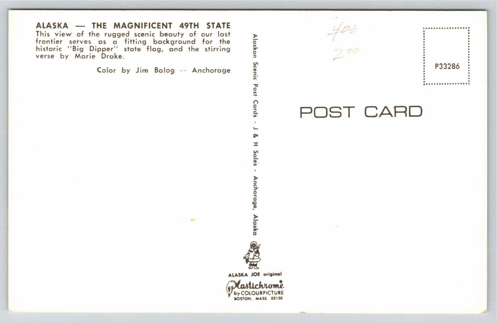 Flags~Glacier & Alask's Flag & Alaskan Flag Poem~Vintage Postcard