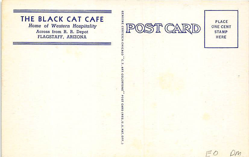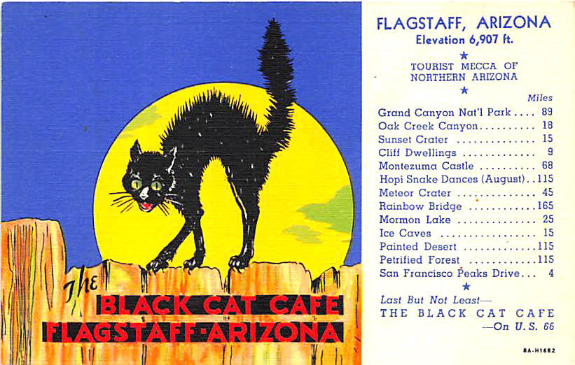 Flagstaff AZ Black Cat Cafe on U. S. 66 Curt Teich, Postcard.