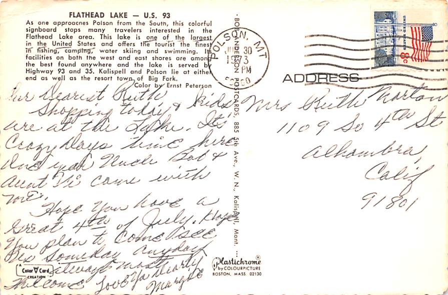 Flathead Lake - Montana Grade: 3 - paper glued to card Category: Continental Size Postcard, Approx 4 in x 6 in (10 cm x 15.25 cm) Product Size: Continental size: 4X6 inches (10.5 cm x 15 cm) Grading Scale: Grad ... Read More