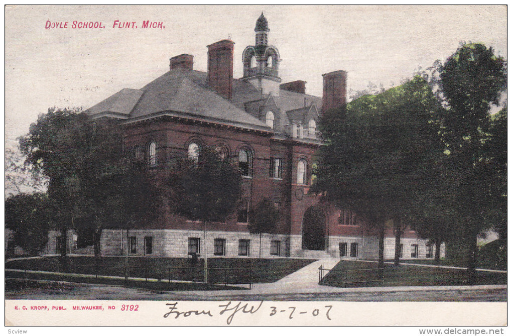 FLINT, Michigan, PU-1907; Doyle School :: Postcard, 3.5" x 5.5", Litho, VG+, WOB