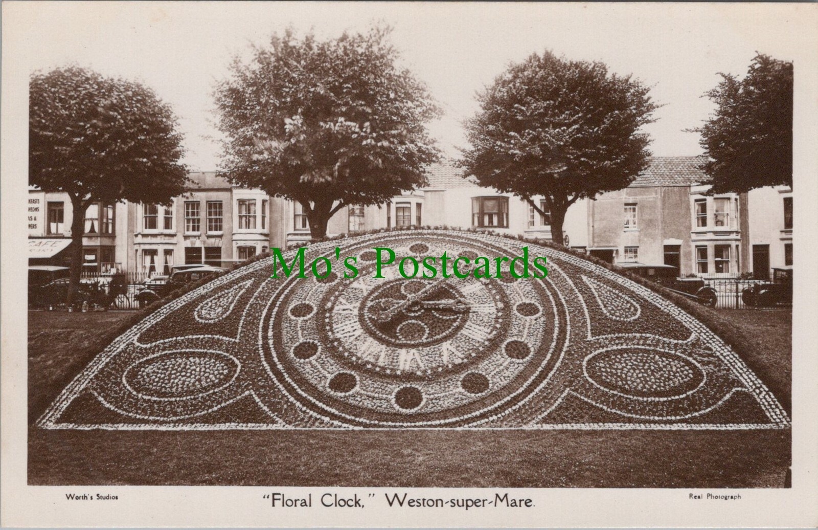 "Floral Clock", Weston-Super-Mare, Somerset. This is a fantastic standard sized postcard which would be a great addition to your postcard collection. From Worth's Studios. Dated 1938. This postcard has some light surface wear. If a postcard has any obvious defects they will be mentioned within this product description. Please use our image magnifier to make your own assessment on the condition. All of our beautiful postcards are posted to you inside a plastic sleeve and a board backed envelope which will be marked 'Please do not bend'. The 'Mo's Postcards' watermark does not appear on the actual postcard'. Mo's Ref No: SW7516 for "Floral Clock", Weston-Super-Mare, Somerset
