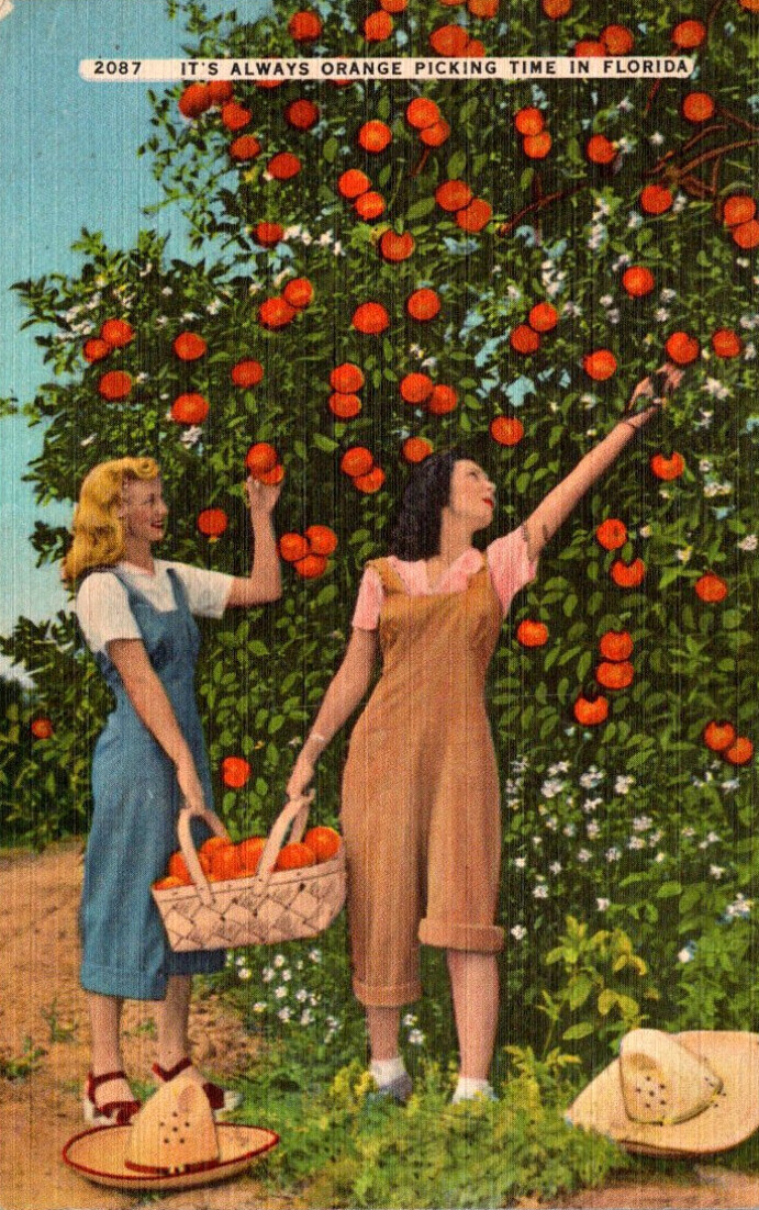 Florida Beautiful Girls Picking Oranges 1948