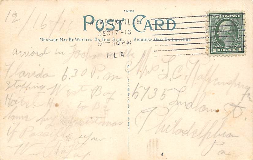 Florida Greetings Christmas Postcard Postage Date Used, Grade: 3, , Size: Regular Size Postcard - approximately 3 1/2 inch x 5 1/2 inch (9 CM x 14 CM) Grading Scale: Grade 1 = Perfect corners Grade 2 = Very Min ... Read More