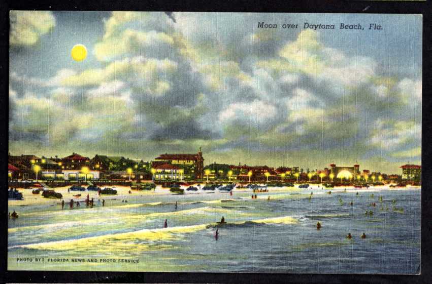 Florida Moon over DAYTONA BEACH World's Widest Beach LINEN