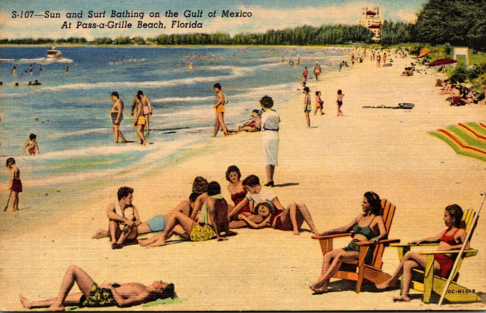 Florida Pass-A-Grille Beach Sun & Surf Bathing 1953 Curteich