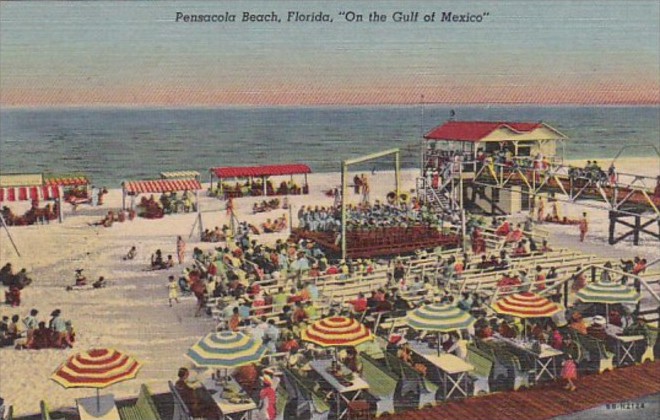 Florida Pensacola Beach Sun Bathing Scene Curteich