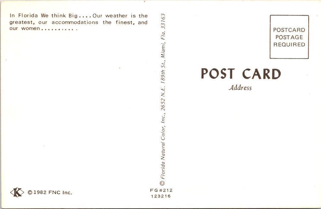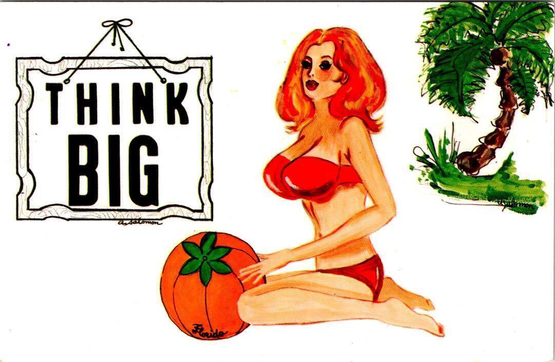 Florida Risque Comic THINK BIG Busty Redhead~Red Bikini BATHING BEAUTY Postcard