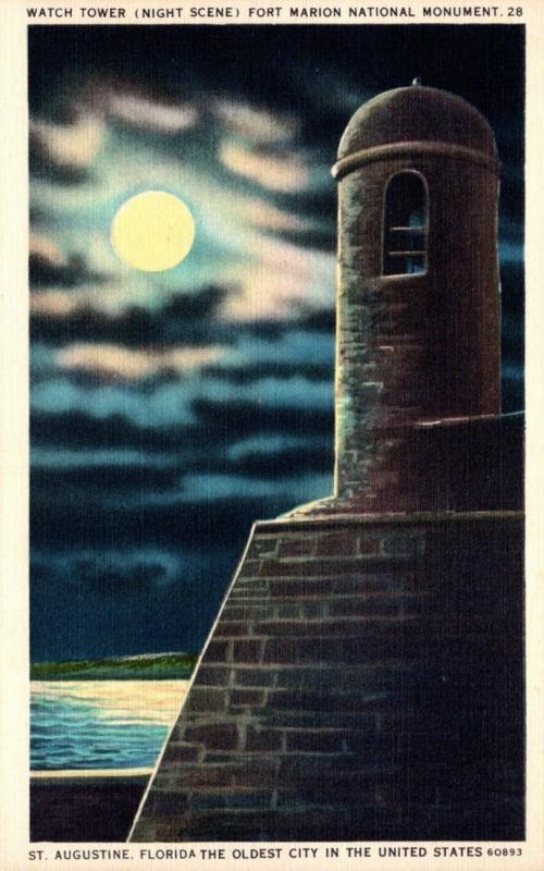 Florida St Augustine Fort Marion The Watch Tower At Night