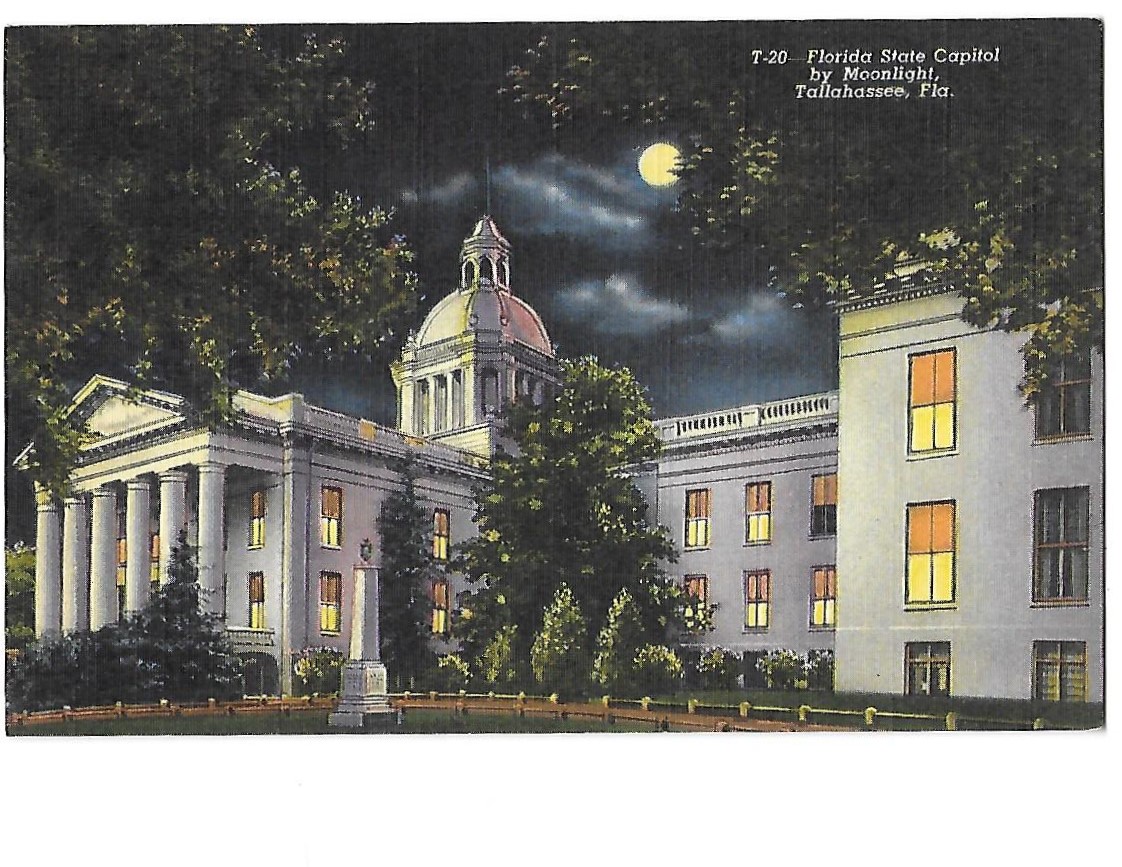 Florida State Capitol by Moonlight, Tallahassee, Florida. C T Art Colortone Only Southern Capitol that never surrendered during the War Between the States.