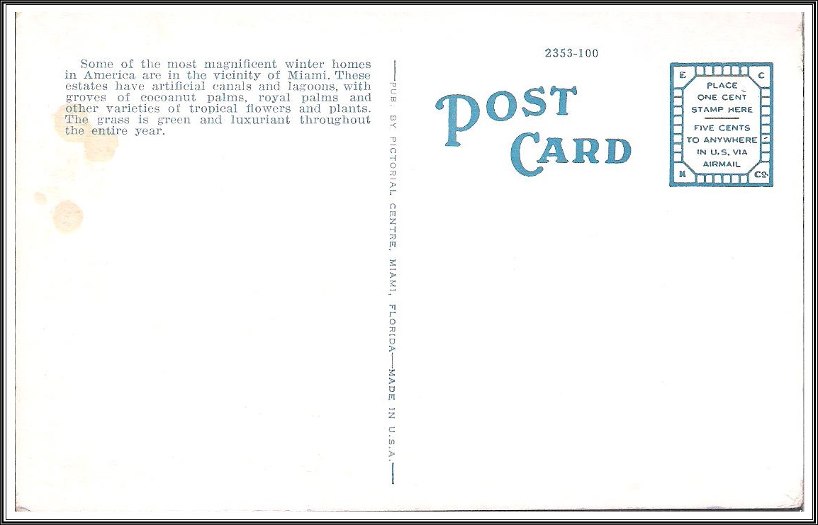 Type: Date: Description: Tropical Yard - Miami Condition: Unaddressed - Few Stains Keywords: postcard - Standard Size