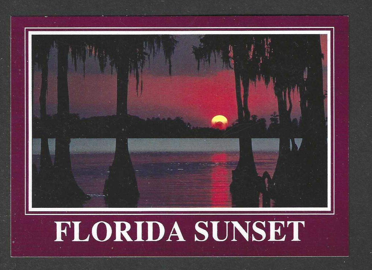 Cypress trees and Spanish moss are depicted here over the tranquil waters of a subtropical Florida sunset.Did you forget to purchase this card while visiting Florida.?