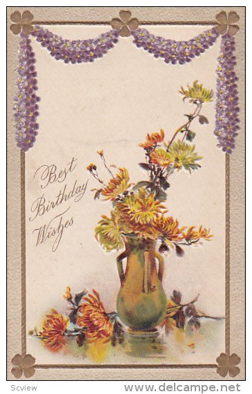 Flower Basket Birthday Greetings , PU-1913 :: Postcard , 3.5 by 5.5" , Litho , VG+