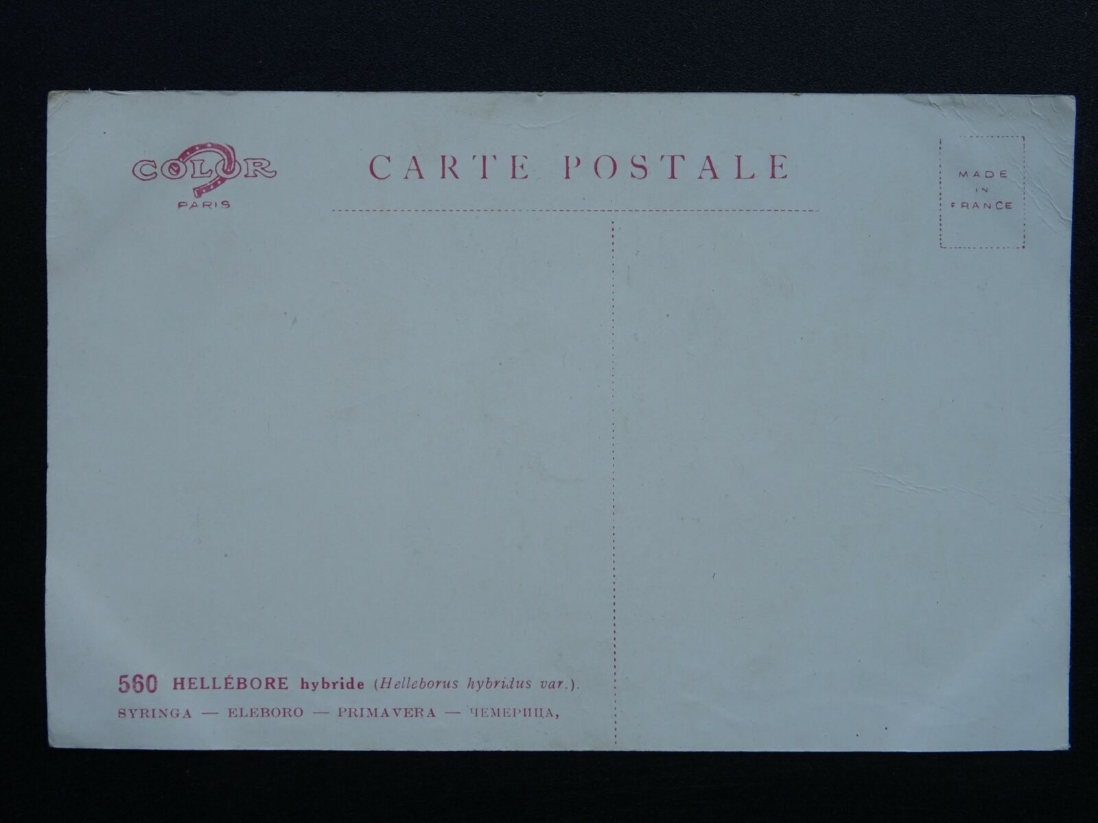 Flower HELLEBORE HYBRIDE - Old French Postcard Flower HELLEBORE HYBRIDE - Old French Postcard Postcard Details Additional Information - Postcard Condition (VG) - Very Good - Postally - unused / Postcard Details - Please see detail on the photographic image or contact us for details. Abbreviations: (UB) Undivided Back / (RP) Real Photograph Postcard / (PM) Postmark Interest / (CDS) Cancellation Date Stamp / (SQC) Squared Circle / (DP) Duplex PostmarkPTP Reference - 130921 Postcards WelcomeWelcome to our store. At Past Time Postcards we stock a comprehensive range of British antique and vintage topographical postcards, cigarette cards, rare antique prints and other antique collectables.We aim to make your shopping experience enjoyable and stress free. We list our postcards topographically and by subject matter to make it easier for you to locate the items that interest you. Feel free to browse and explore at your leisure, however if you require assistance locating items or have a specific request please don't hesitate to contact us.Combined Postage We will always combine postage when you purchase multiple items. Please make your multiple purchases by using your Hip BASKET where postage will be combined automatically.Postage & PackagingPostage rates are calculated to include postage and packaging. All Full Sets of Cigarette or Trade Cards are posted 1st Class and protected with a plastic sleeves in a BOARD BACKED ENVELOPE & FULL SET HAVE ADDED STIFFNER BOARD for added security and protection. Payment MethodsOur preferred method of payment is through PayPal for all purchases.UK CUSTOMERS can make payment by PayPal, Personal Cheque or Postal Order. PLEASE NOTE: Credit cards included in PayPal payment method Inc. Visa, MasterCard, American Express, Discover. FOR CUSTOMERS OUTSIDE THE UK: we can only accept PayPal as method of payment100% SatisfactionIf in the unlikely event you are unhappy with your item you have purchased on the basis that the postcard was incorrectly described or graded we do offer a complete refund less the cost of postage and packaging once the item is returned to us.Condition & Grading Information(M) Mint – Like new, almost perfect(EX) Excellent – No obvious flaws, sharp corners, clean and if postally used the writing does not detract from appearance.(VG) Very Good - Minor defects such as album marks, signs of age and handling is acceptable that do not detract from appearance.(G) Good – Noticeable defects, handling and wear apparent. Minor creasing or minor postal damage not detrimental to image.(F) Fair – Obvious creasing, staining, small tears or damp damage evident. Significant edge or corner damage.(P) Poor – Incomplete or image seriously affectedFinally if you have any specific requests or questions we are always very pleased to offer support and assist you with your collecting needs.Kind regardsMark - Past Time Postcards Listing and template services provided by inkFrog