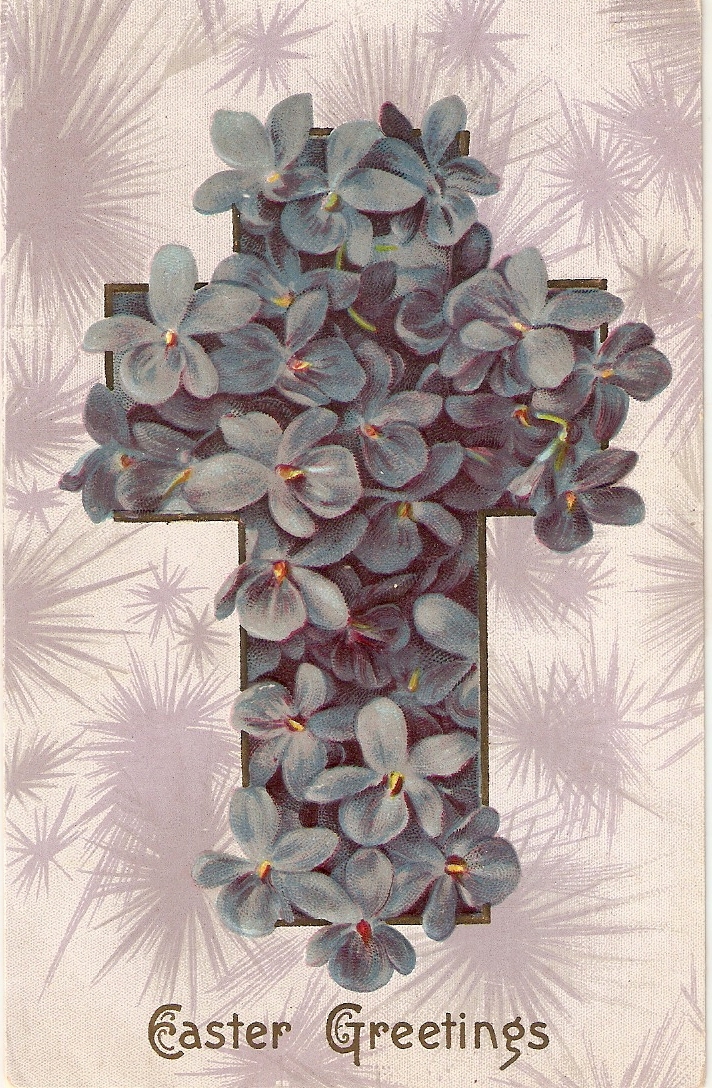 "flowers cross" old vintage american easter greetings pc. Embossed