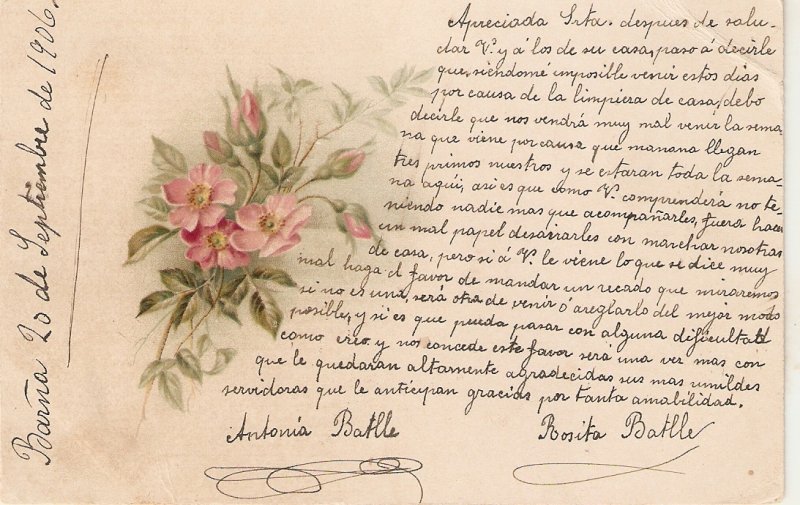 Undivided. Written on back and front sides. Posted 20 Sept 1906. 10 cents Spanish stamp affixed.