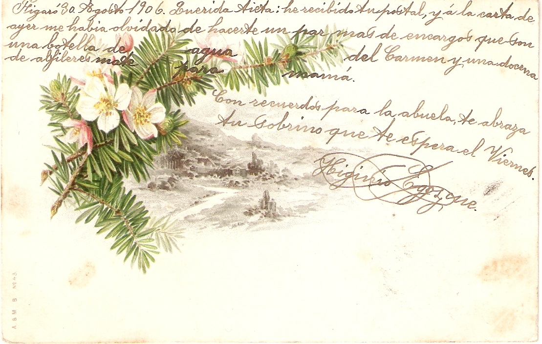 Undivided. Written on back and front sides. Posted . . 10 cents Spanish stamp affixed.
