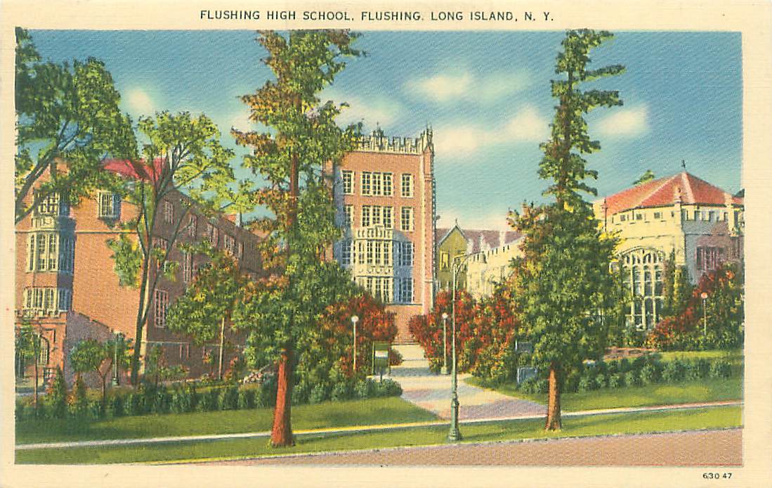 Flushing NY High School Long Island WB Postcard Unused