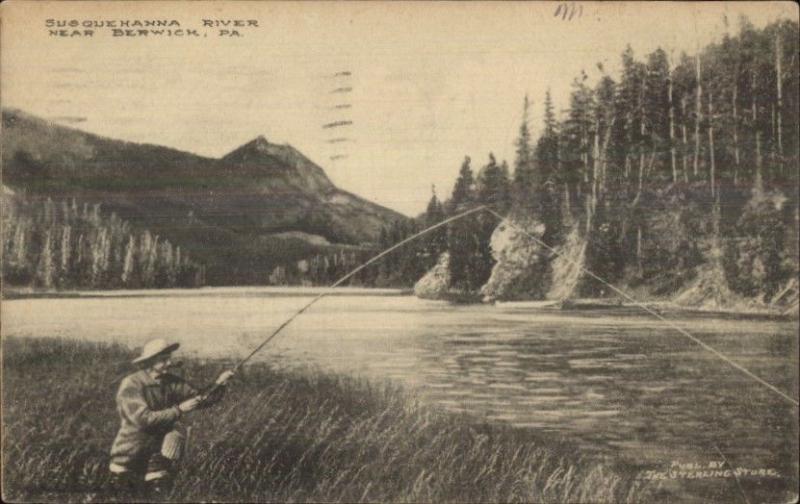 Fly Fishing Susquehanna River Near Berwick c1910 Postcard