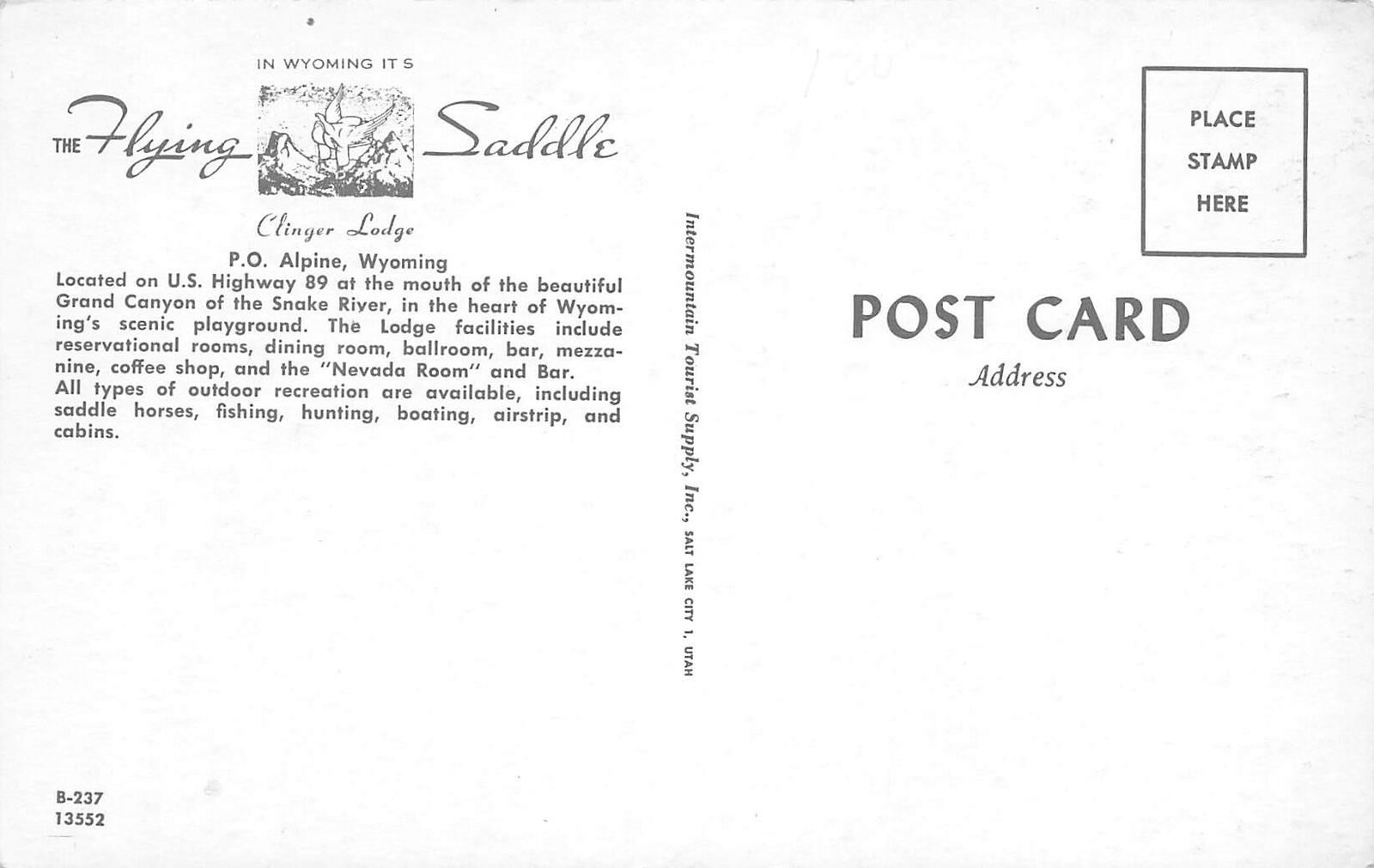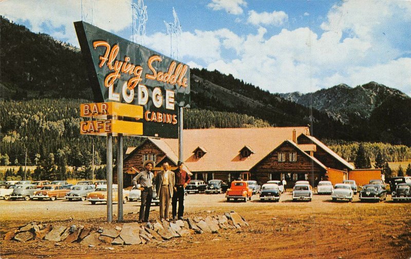 Flying Saddle Clinger Lodge Alpine Wyoming postcard