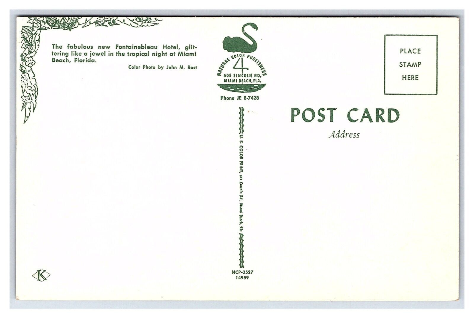 Fontainebleau Hotel Miami Beach Florida Night View Postcard