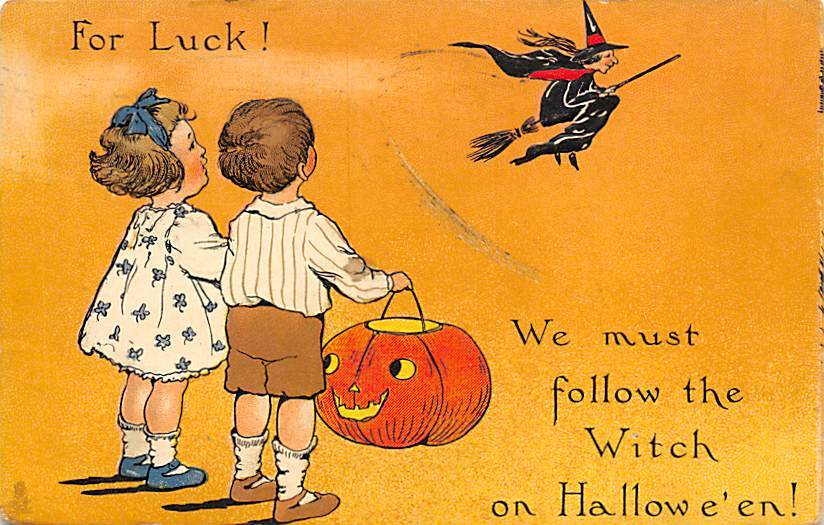 For Luck Halloween Postcard View Images, Grade: 3 Size: Regular Size Postcard - approximately 3 1/2 inch x 5 1/2 inch (9 CM x 14 CM) Grading Scale: Grade 1 = Perfect corners Grade 2 = Very Minimal corner wear, ... Read More